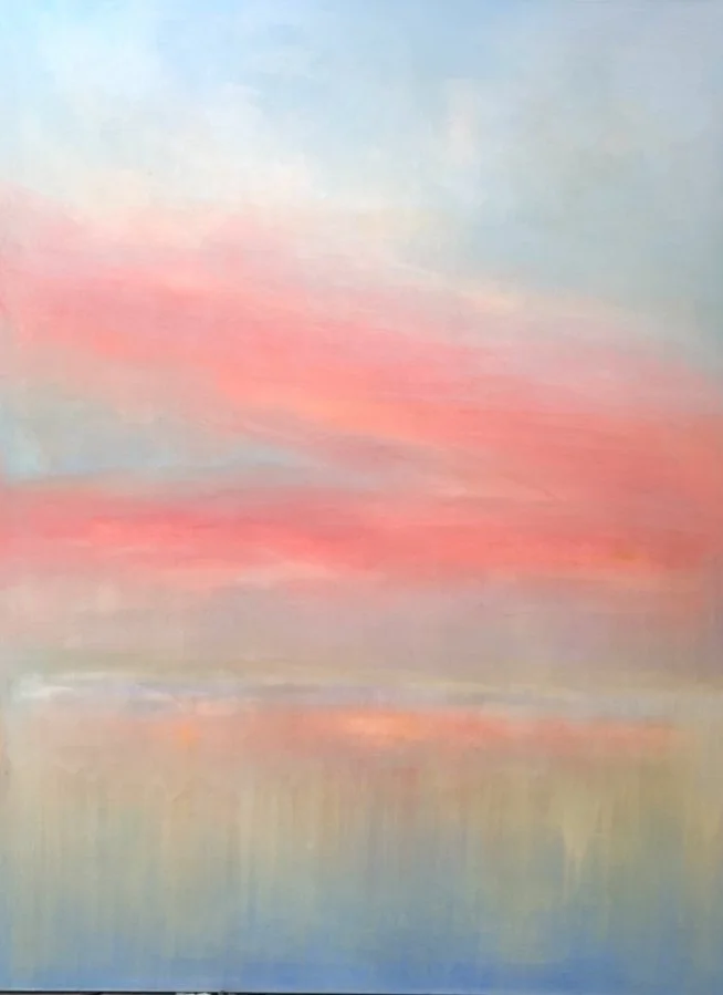 Collectors of her work often comment that her atmospheric paintings evoke feelings of peace and tranquility. A calming, comforting effect occurs in any interior space where her work is displayed. Her paintings are easy to get lost in while viewing them, much like watching colourful clouds drift by. Nature is her inspiration, stillness, her guide and creative thought, her inner mentor.