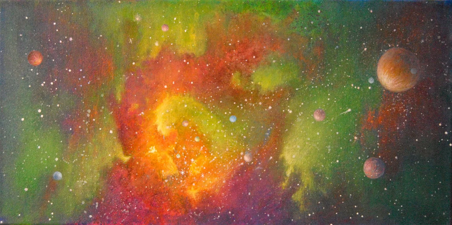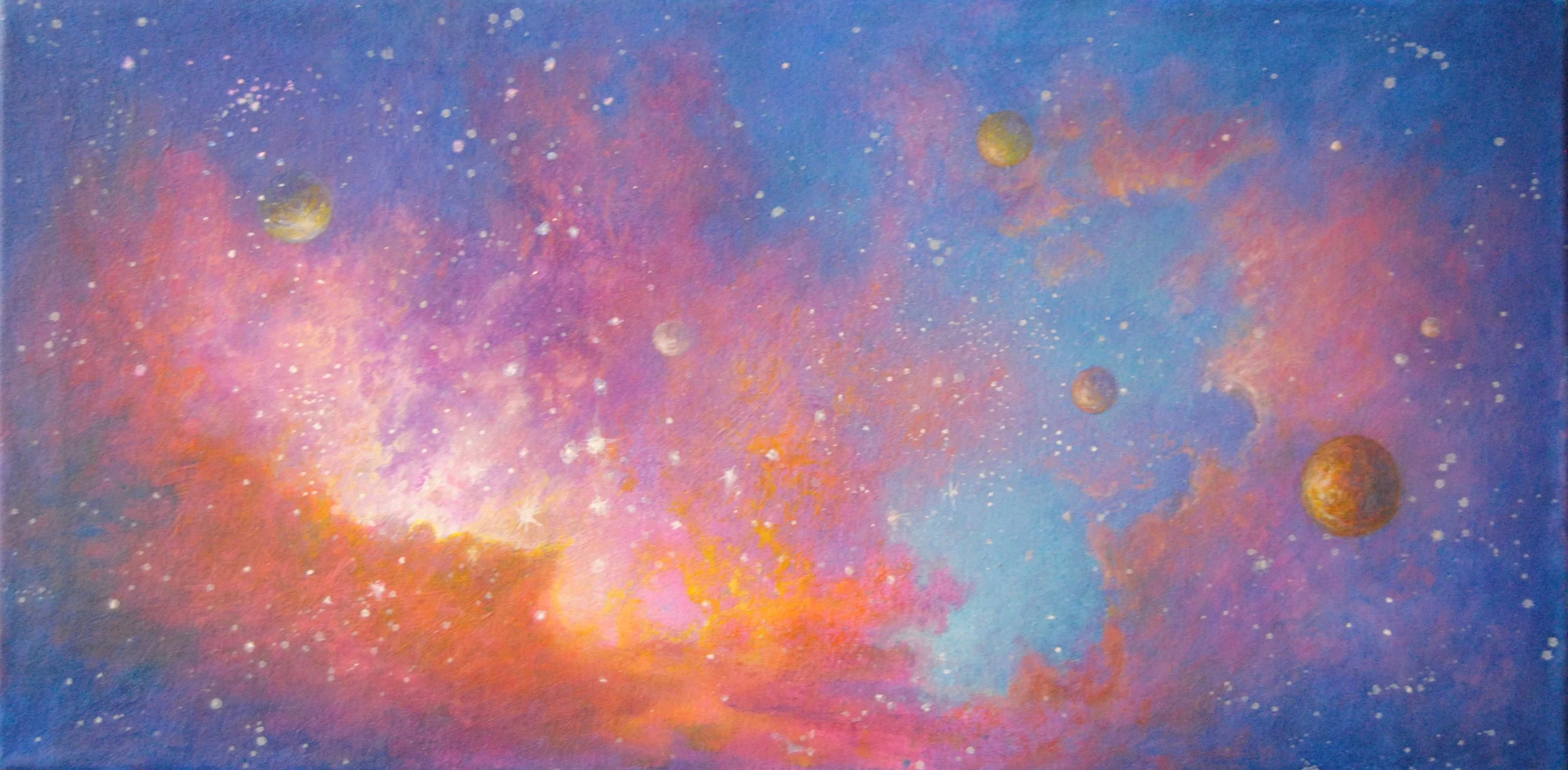This is 3 of 6 paintings I did for a commission for a children's hospital. The theme of the commission was 'The Universe' and I thought that these paintings fit the theme of this month's contest because the Universe is constantly transforming and our understanding of it, and the way our lives are interacting with it, are constantly transforming.