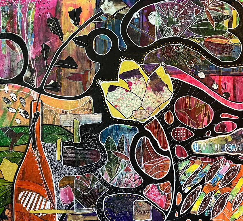 Mixed Media Collage; inktense colour pencils, acrylic paint and paint pens, some papers