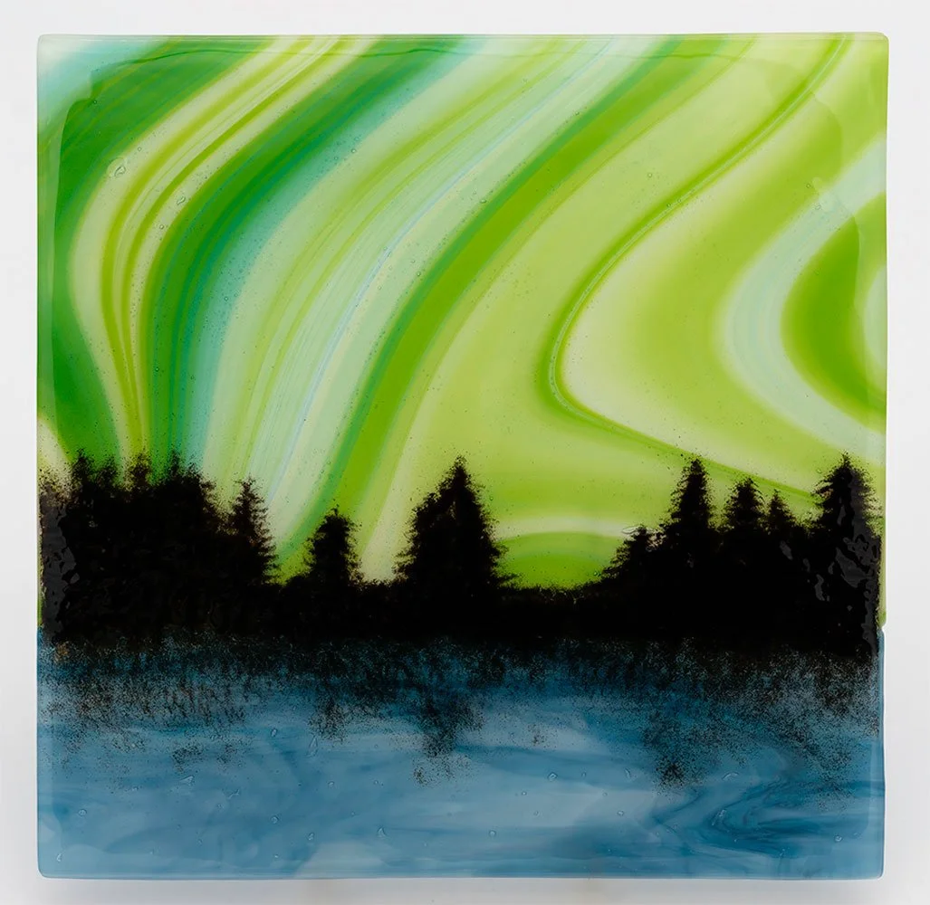 Medium: Fused glassIn Canada, the Aurora Borealis holds profound significance, deeply rooted in Indigenous oral traditions, ancestral memory, and the spiritual connection to the land. Many First Nations, Inuit, and Métis cultures interpret the lights as the spirits of ancestors dancing or communicating, serving as a vital link between the living and the spirit world.