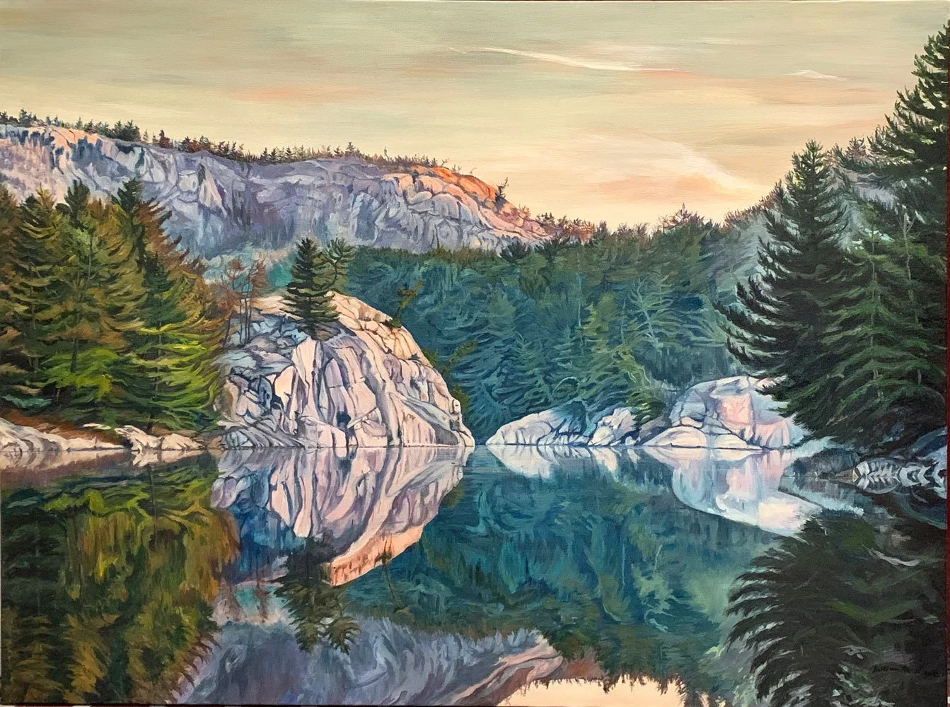 Size: 30 × 40 inchesThis is one of the many beautiful lakes within Killarney Park. Most of these scenes are accessible only by water. This area is part of my family history from the 1800s. My grandparents were in this area from that time, and my grandfather was an early doctor who travelled through this wild country by boat, sled, and horse and buggy before he got his Model T in the early 1900s. This area holds my heart.